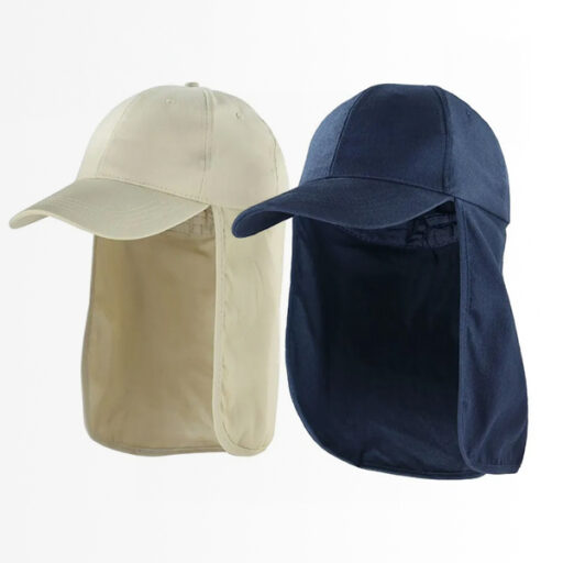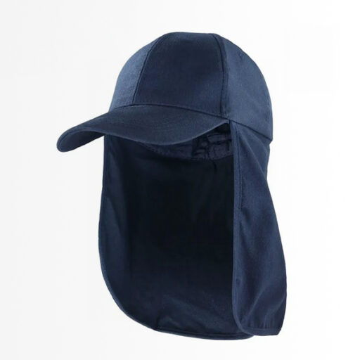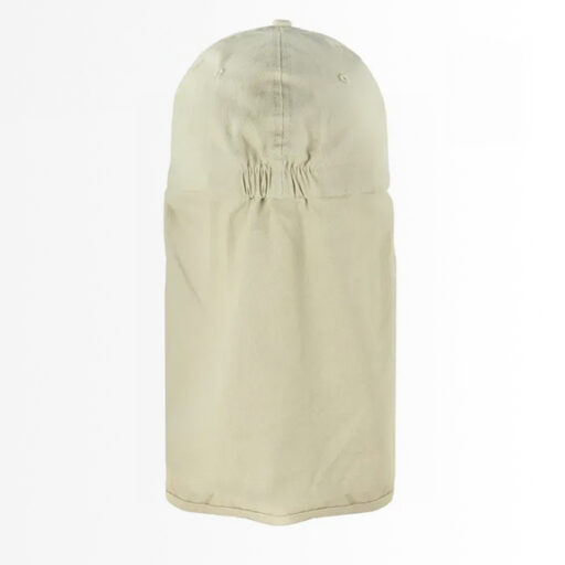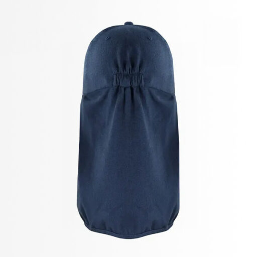 Con su distintivo color azul y beige, este gorro no solo ofrece una presentación profesional, sino que proporciona una cobertura total para cabeza, cuello y nuca, las zonas más expuestas a la radiación solar durante la jornada laboral.