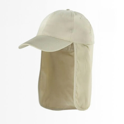 - Características: Visera amplia, cubre cuello y nuca completo, pieza elasticada posterior